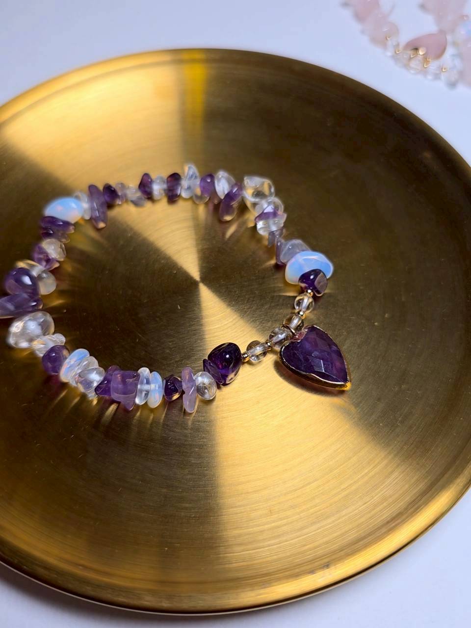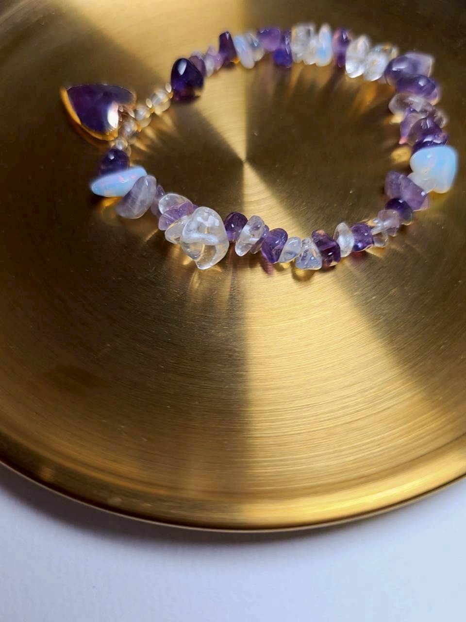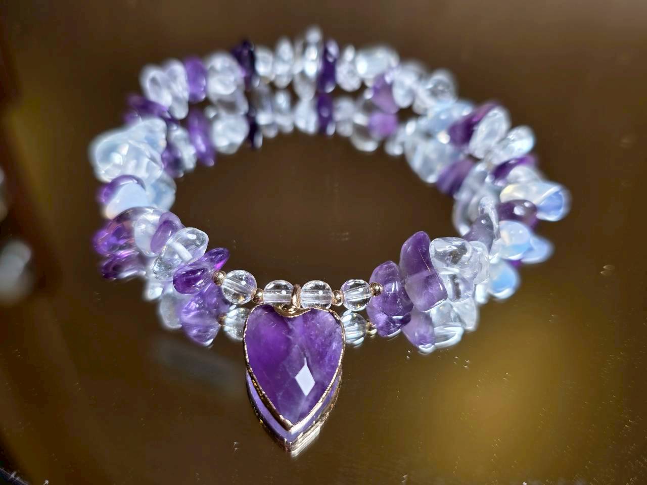 商品材質:天然紫水晶、天然白水晶、蛋白石