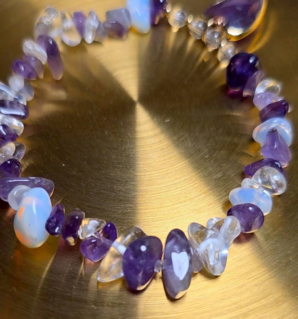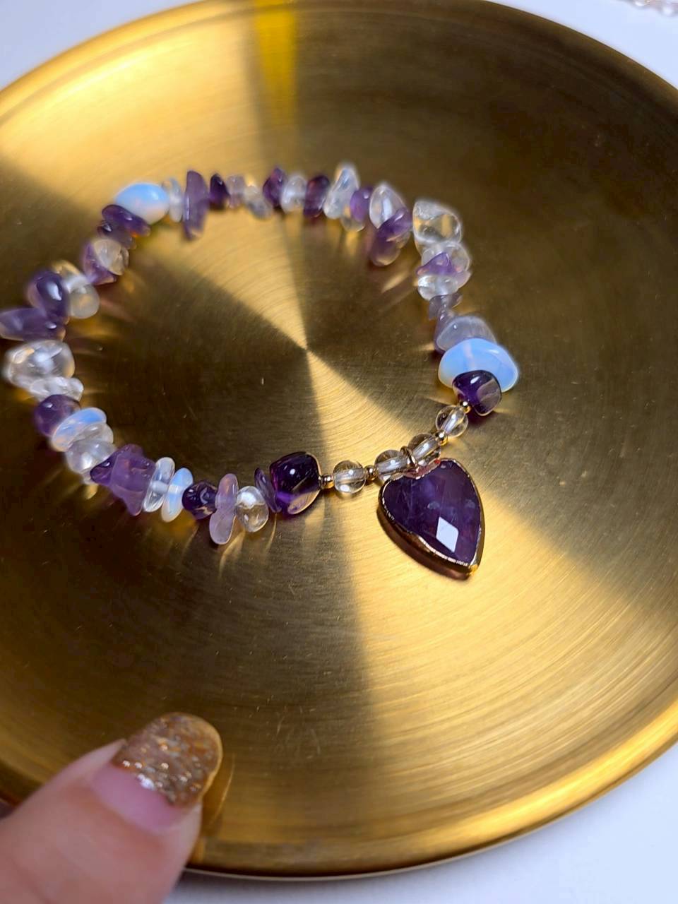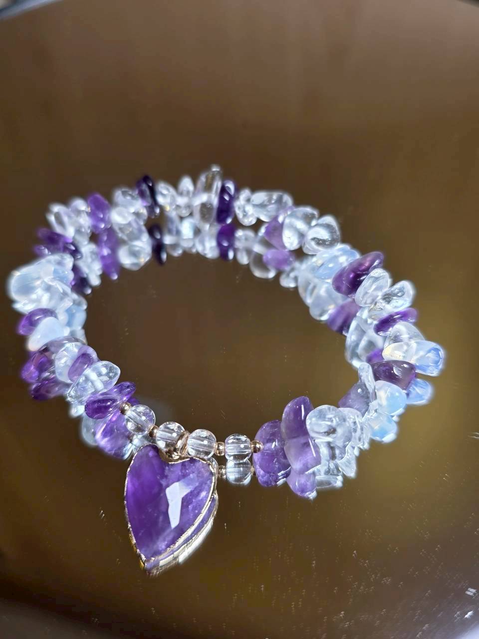 商品材質:天然紫水晶、天然白水晶、蛋白石