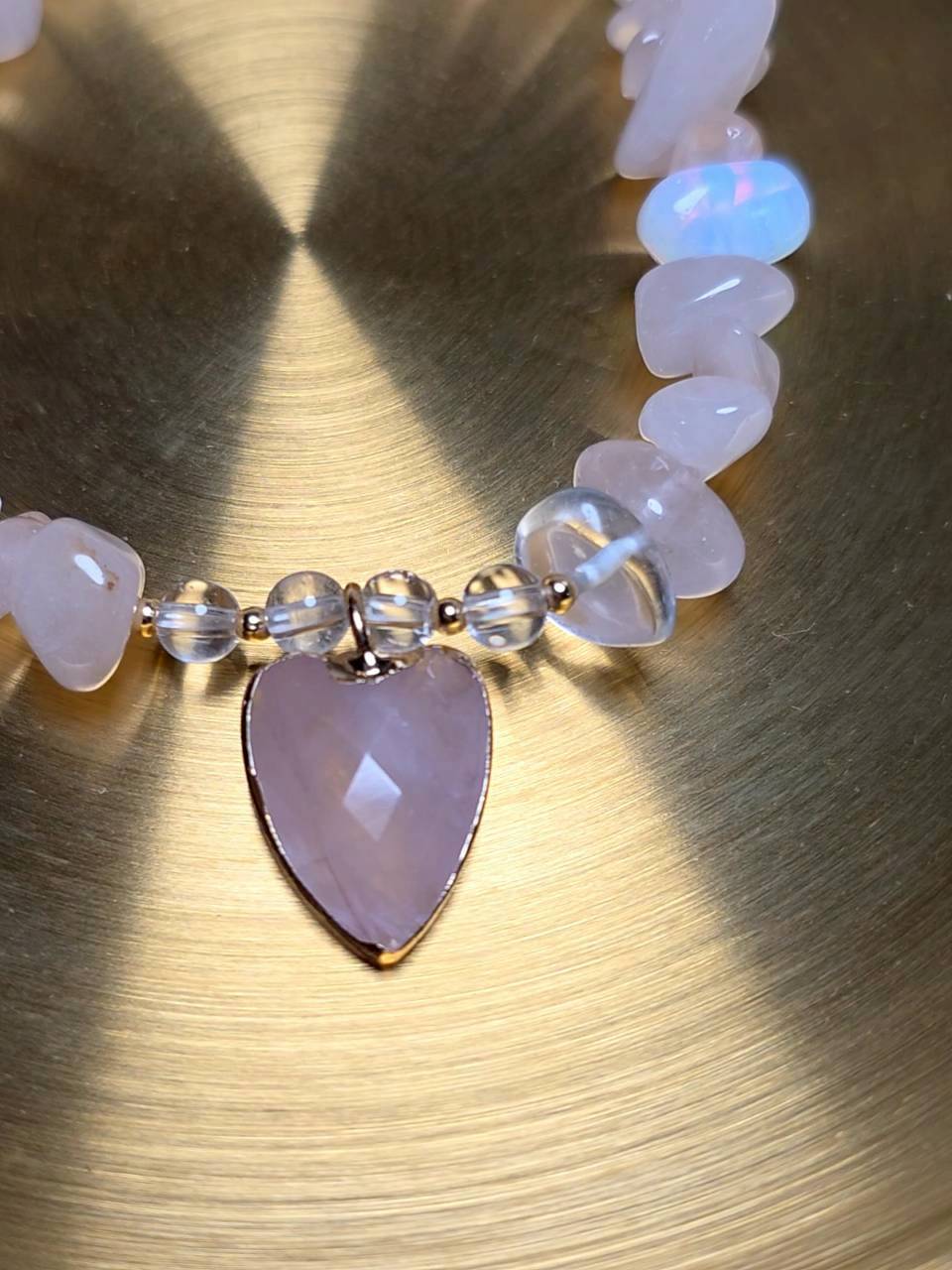 商品材質:天然粉水晶、天然白水晶、蛋白石