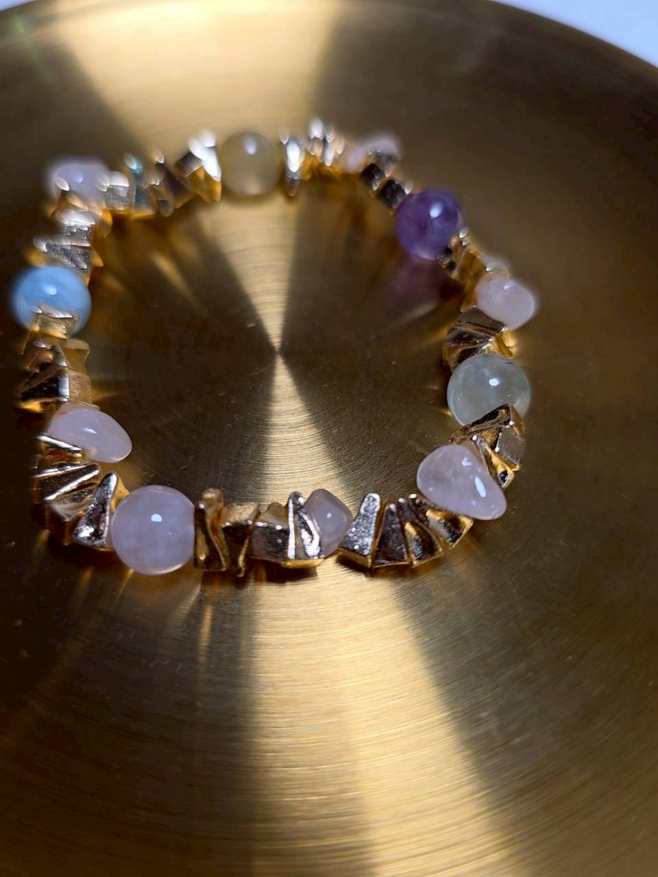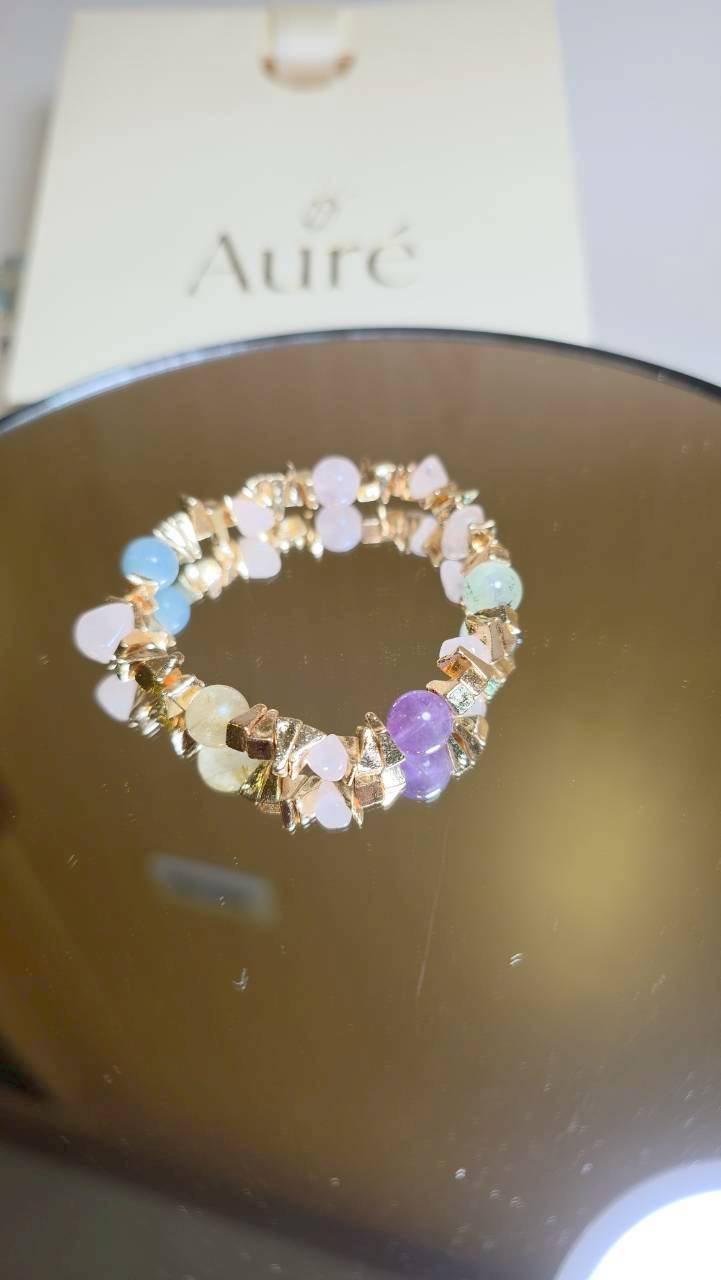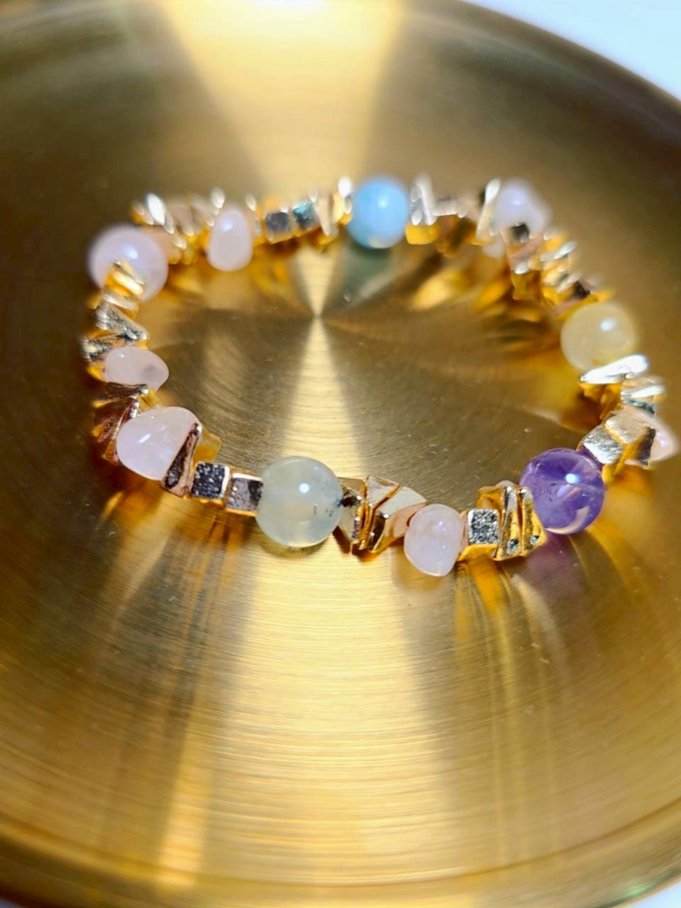 結合六種天然晶石與導能金屬切面,幸運星芒是一條集結愛、直覺、溝通、行動力與財富的全方位能量手鍊。